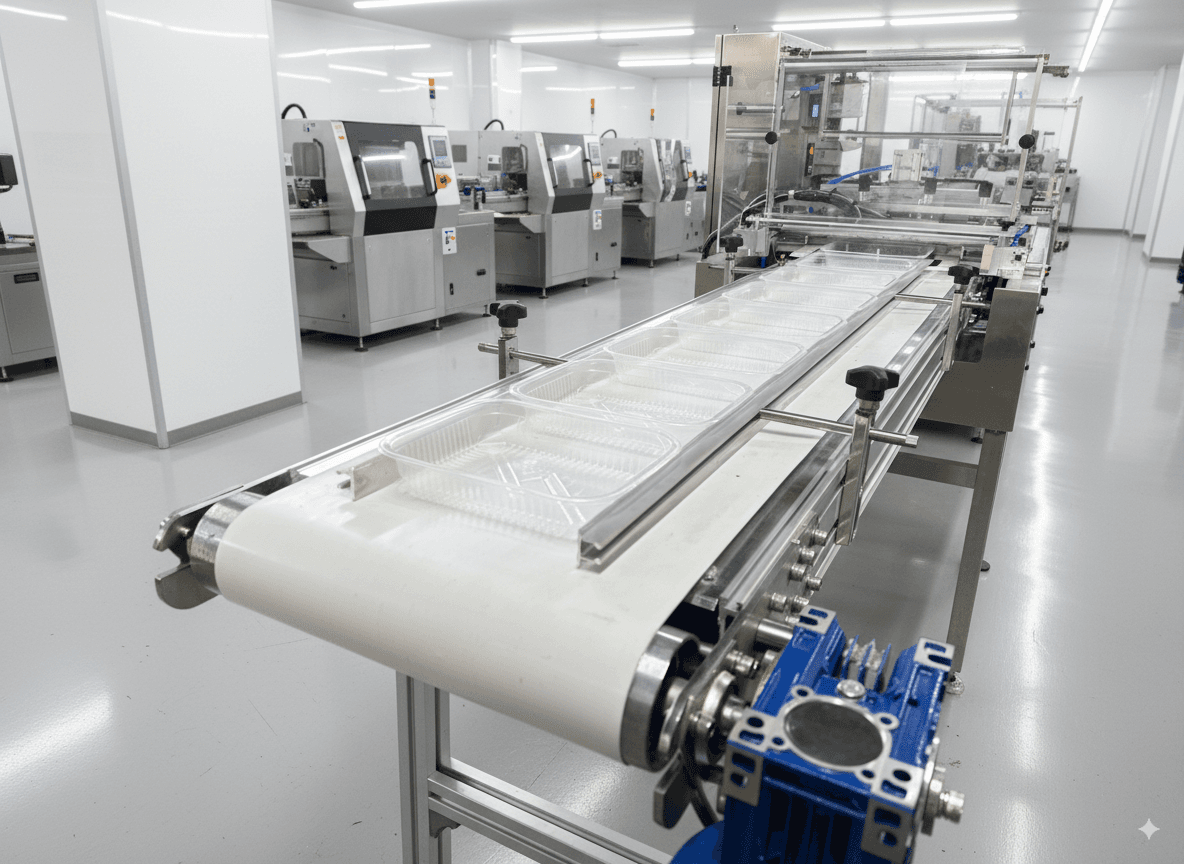Vea cómo nuestros equipos transforman láminas plásticas en envases perfectos. Proceso continuo, precisión milimétrica.